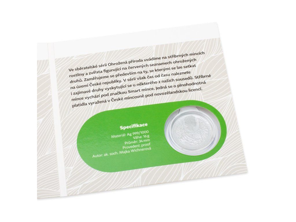 Výrazná černožlutá kresba nezaměnitelně zbarveného obojživelníka, který vyhledává skrýš před sluncem převážně ve skalách, pod kameny a pod kůrou stromů, je v podstatě varováním pro ostatní druhy. Ano, jedná se o mloka skvrnitého, dalšího nádherného tvora figurujícího v České republice na seznamu ohrožených druhů, kterému náleží nejnovější emise jedinečné stříbrné Smart mince 1 NZD od České mincovny.