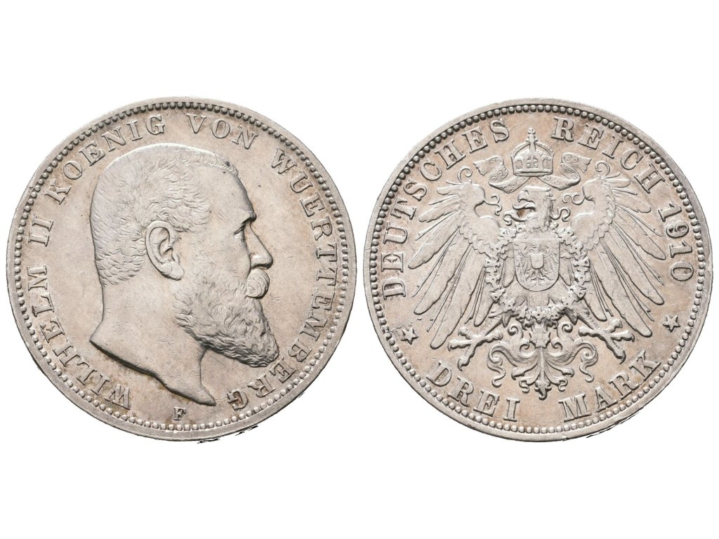 Württemberg, 3 Marka 1910 F