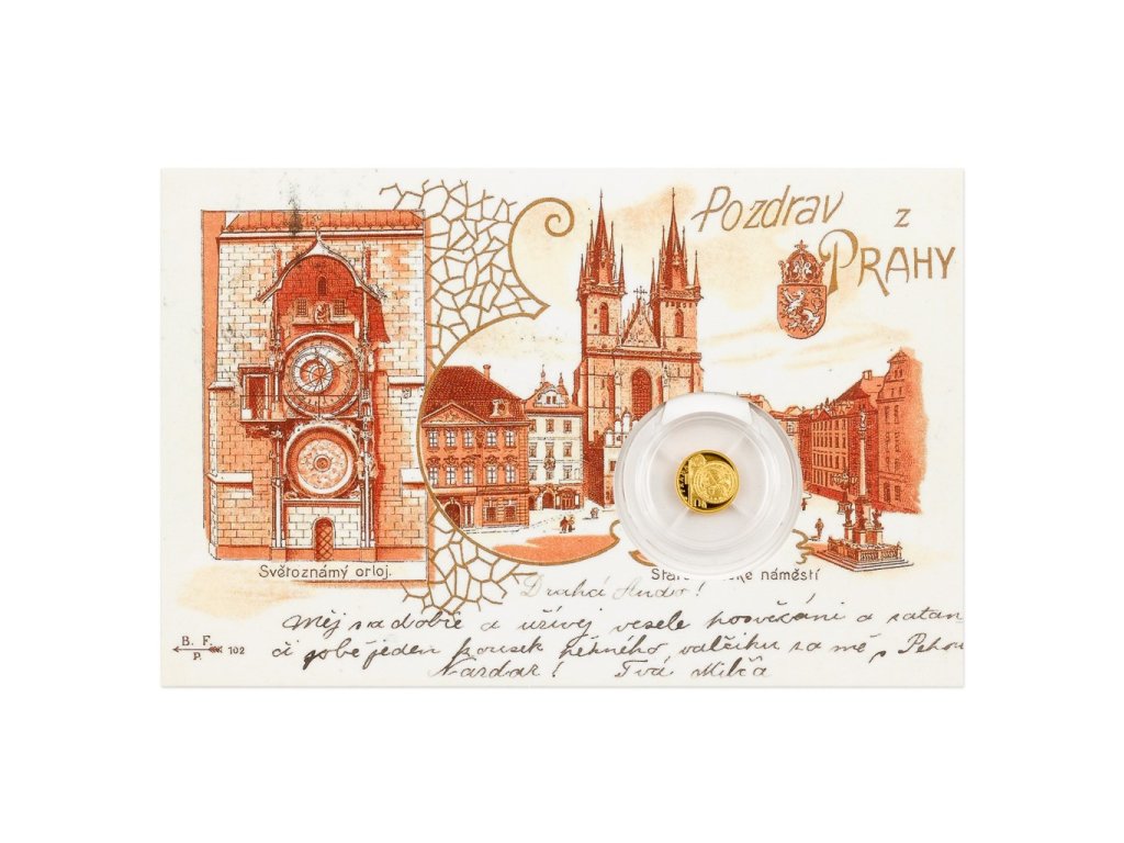 Zlatá mince Praha - dobová pohlednice